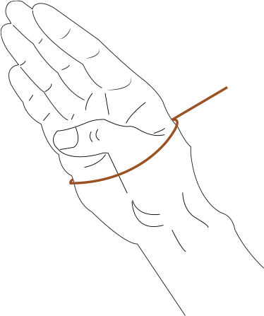 Close your fingers together and bring your thumb to your little finger (as pictured).Pretend that you were putting on a bangle.
